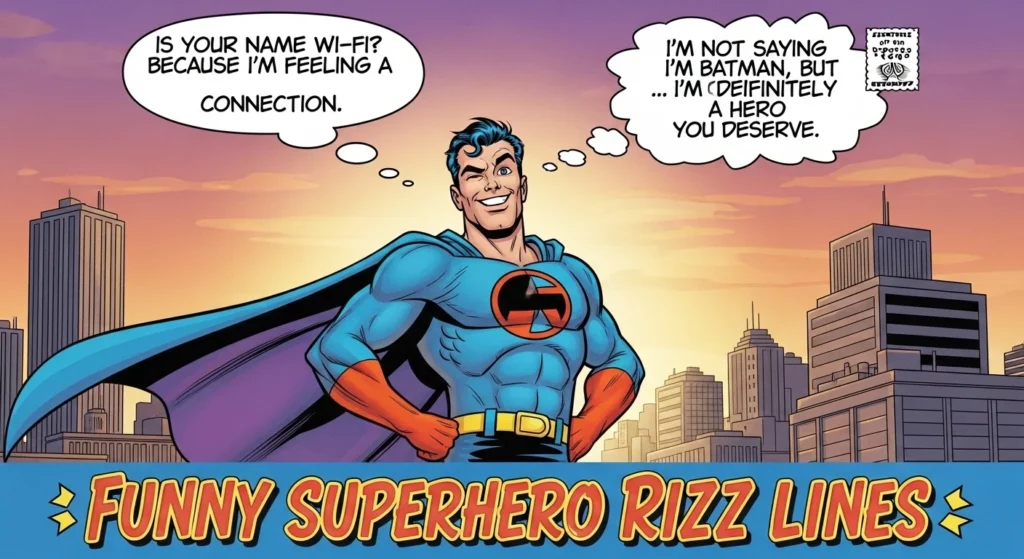 Looking for hero-level charm for your posts, captions, or DMs? Whether you’re aiming to be funny, flirty, or downright heroic, these superhero rizz lines will turn your content into an instant scroll-stopper. With 136 lines across 8 categories, your inner superhero is ready to swoop in and save the day!